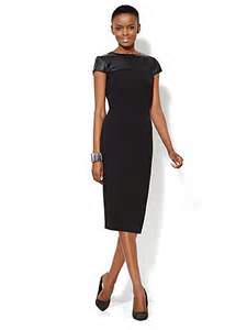 It’s snowing out, I’m functioning on three hours of sleep and four cups of coffee so far, so I need a bit of Monday fashion pick-me up. This faux-leather trim midi sheath dress has me lusting after its classic style with a twist. Loving the curve- hugging silhouette of this sheath dress in a contemporary midi length, with fresh (and easy) cap sleeves and (forgiving) stretch knit. Not to mention the faux leather trim at the front and back, turning this dress into a knockout style for day into night. And did I mention the knockout price of $69.95, plus the current buy one get one 50% off promotion on dresses at NY&Co!
